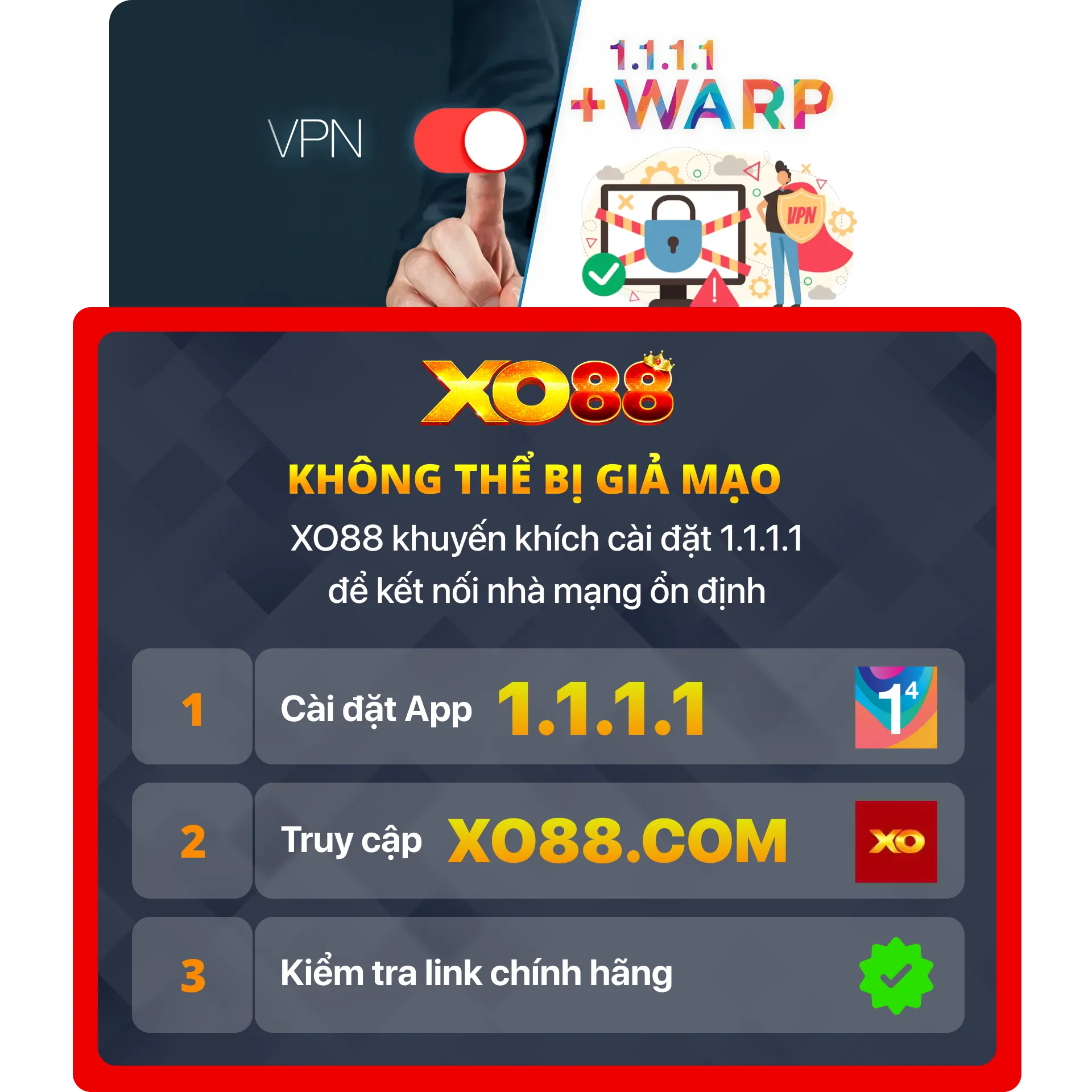 Để hạn chế rủi ro, người chơi nên chủ động cài đặt ứng dụng 1.1.1.1 để đảm bảo kết nối ổn định, tránh tình trạng bị chuyển hướng sang website giả mạo do lỗi DNS. Khi truy cập, bắt buộc kiểm tra chính xác tên miền xo888.app trên thanh địa chỉ trình duyệt. Không đăng nhập thông qua link rút gọn, link quảng cáo trôi nổi hay đường dẫn do người lạ gửi.